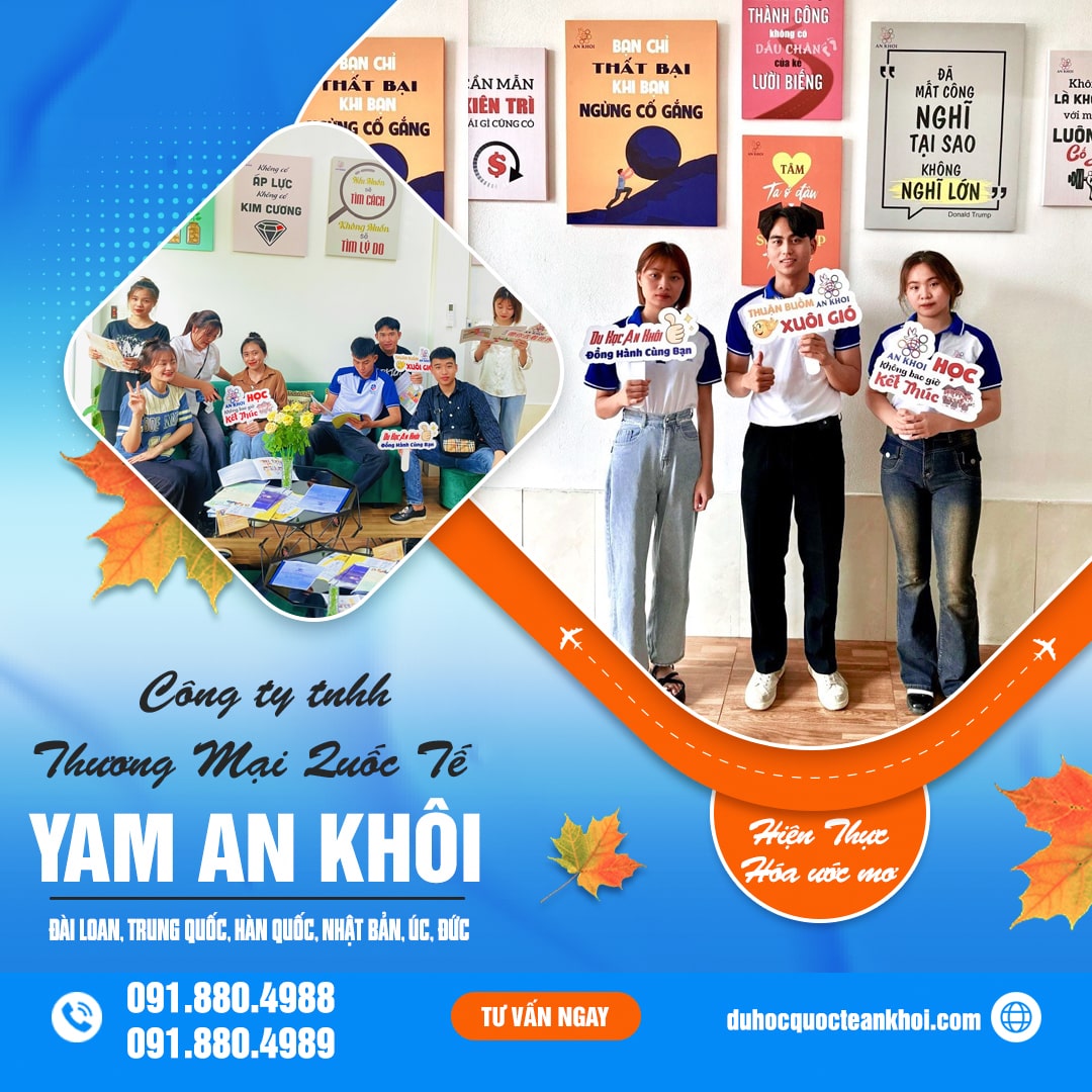 Công Ty Tnhh Thương Mại Quốc Tế Yam An Khôi tự hào là một trong những đơn vị hàng đầu trong lĩnh vực tư vấn du học tại Việt Nam. Chúng tôi cam kết mang đến cho học sinh, sinh viên những cơ hội học tập và trải nghiệm quốc tế chất lượng, góp phần xây dựng tương lai tươi sáng cho thế hệ trẻ Việt Nam. Với nhiều năm kinh nghiệm, Công Ty Tnhh Thương Mại Quốc Tế Yam An Khôi đã giúp hàng ngàn học sinh, sinh viên thực hiện ước mơ du học tại các quốc gia như Đài Loan, Trung Quốc, Hàn Quốc, Nhật Bản, Úc, Đức và nhiều nước khác. Chúng tôi hợp tác chặt chẽ với nhiều trường đại học, cao đẳng và tổ chức giáo dục danh tiếng trên toàn cầu.